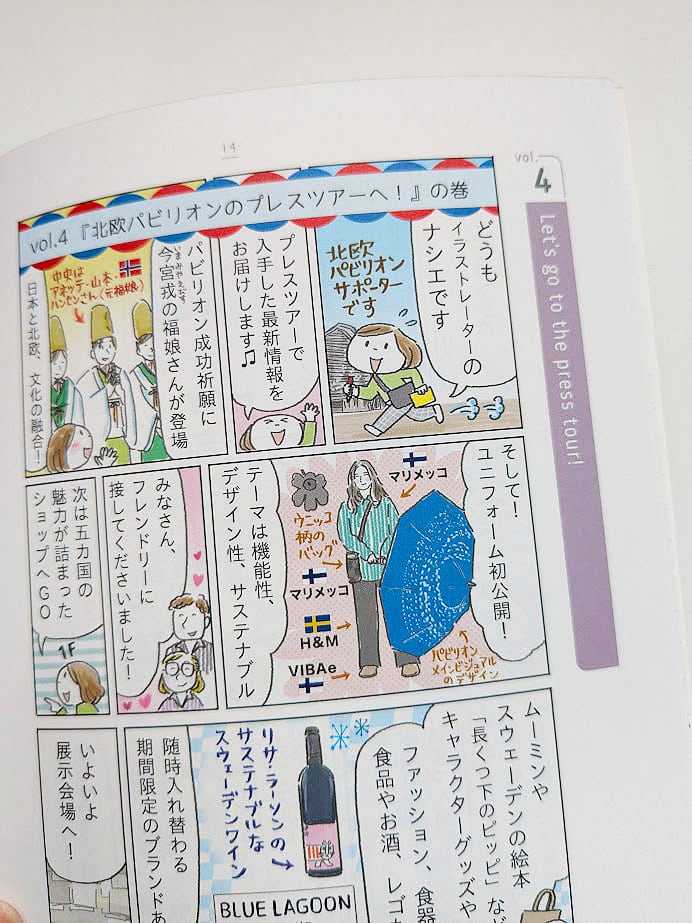 ▶まとまっていて、すごい!カーリヤやフィンランドナショナルデーのファッションショーなど、万博で体験した楽しい記憶をたくさん思い出しました。イラストだからこそ伝わる空気感が心地いいです。